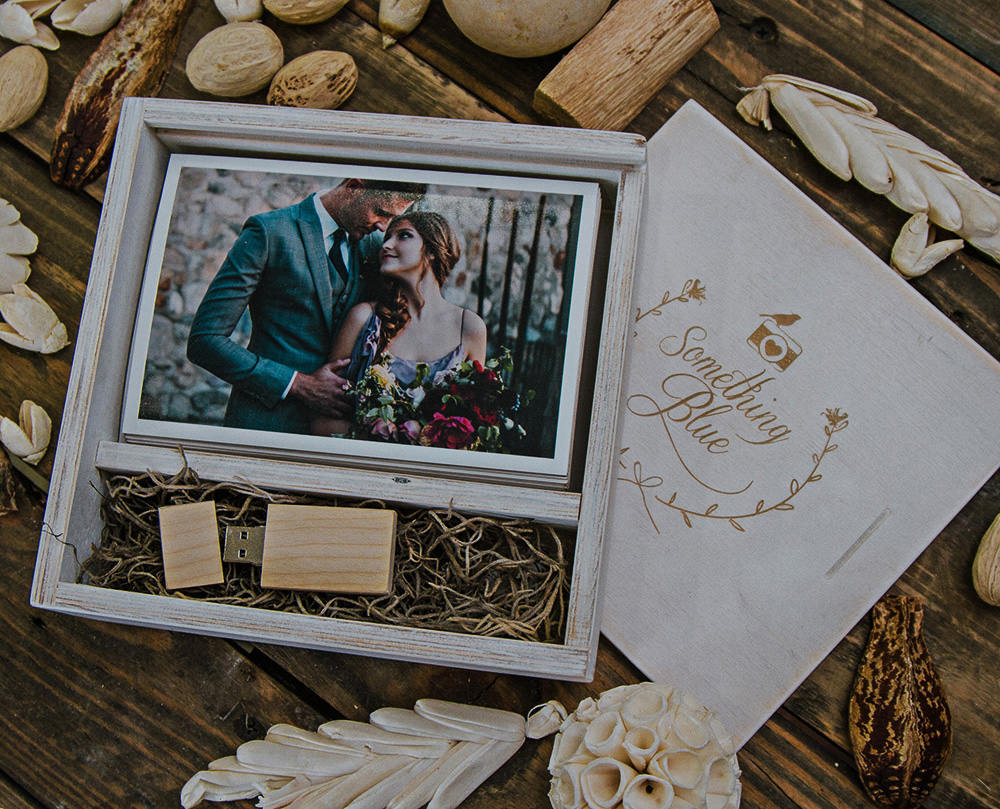 "Box laser engraved" - (the lid of the box will be laser engraved - no USB included)
